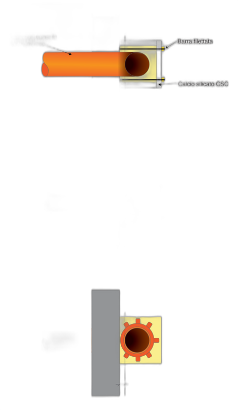 Fissare 2 barre filettate M8 in ferro usando solo tasselli in ferro. Materiale necessario: n° 2 lastre DS STOP FIRE CSC P212/1 n° 1 PLM P222 n° 1 Kg di stucco P212/K2S Se non c’è minimo 1 cm, ricavarlo flettendo il tubo e incastrando un listello in legno.