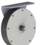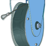 Molla a bobina per porte scorrevoli in termoplastico Aquamid non combustibile, forza 25N, con forcella in acciaio zincato. Cavo in kevlar non combustibile con rivestimento in poliestere Ø2mm.