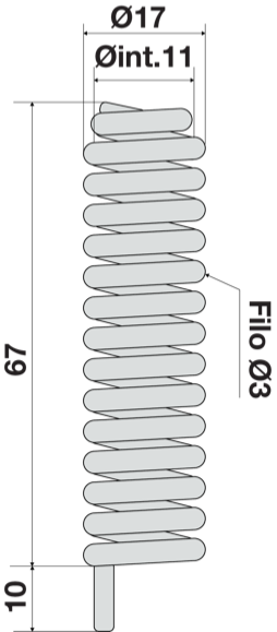 Molla a torsione sinistra per porte a battente di piano. Dimensioni Ø17x67mm, Ø int.11mm, filo Ø3mm.